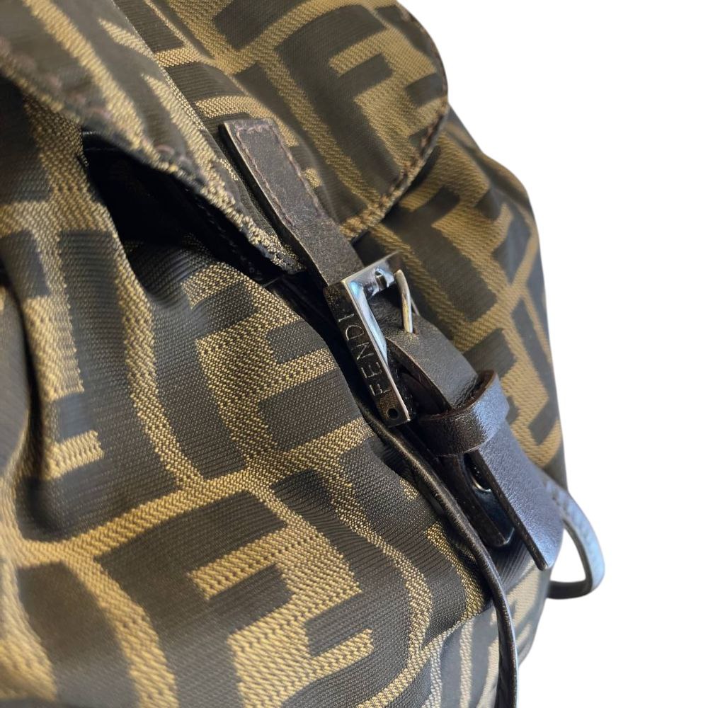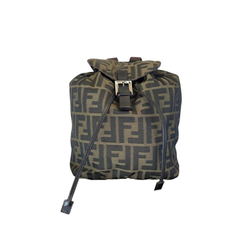 Non lasciarti sfuggire questa icona. Lo zaino Fendi in tela marrone ti aspetta per completare il tuo guardaroba con un tocco di lusso audace!