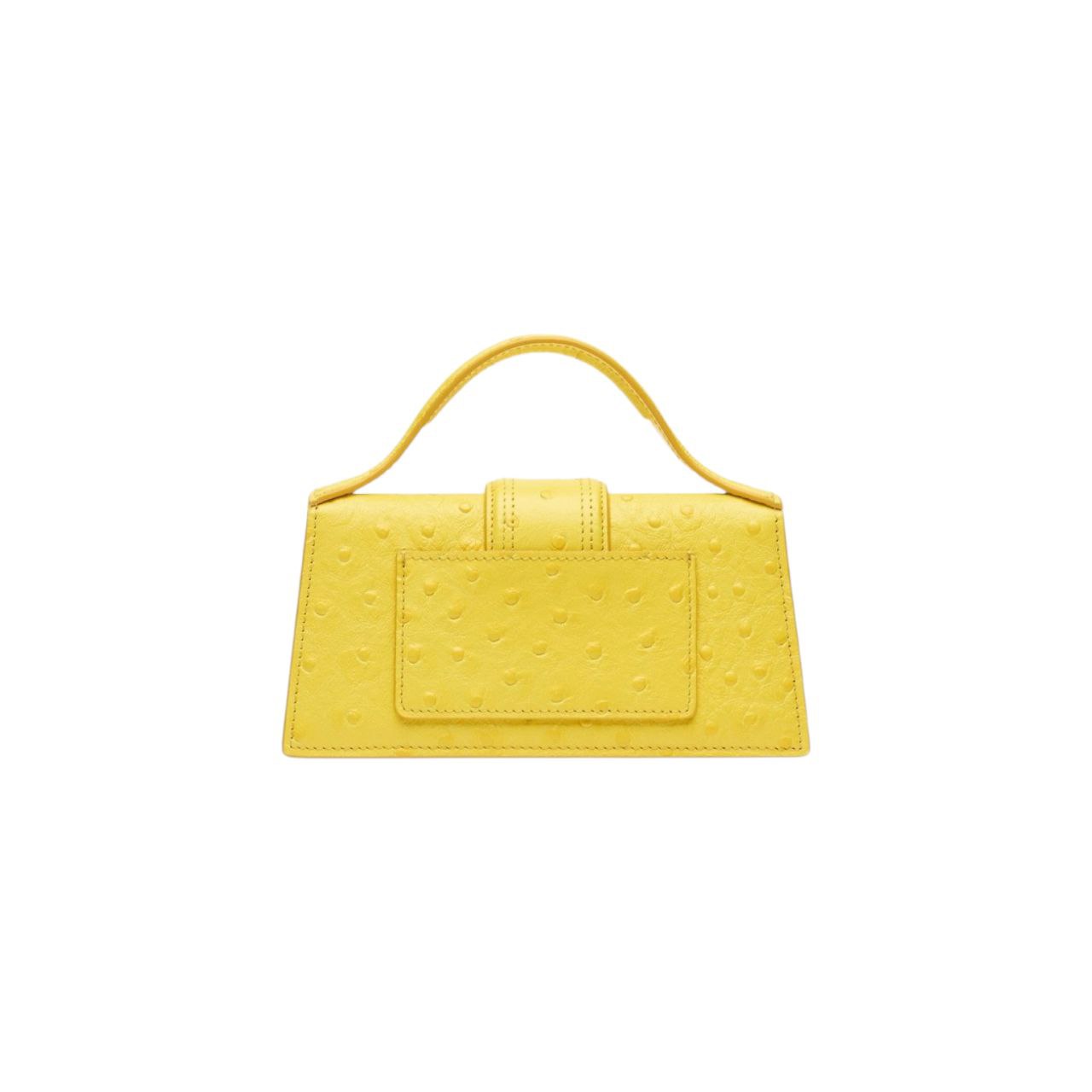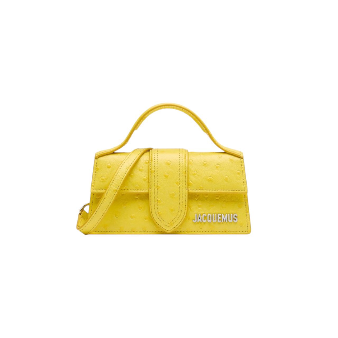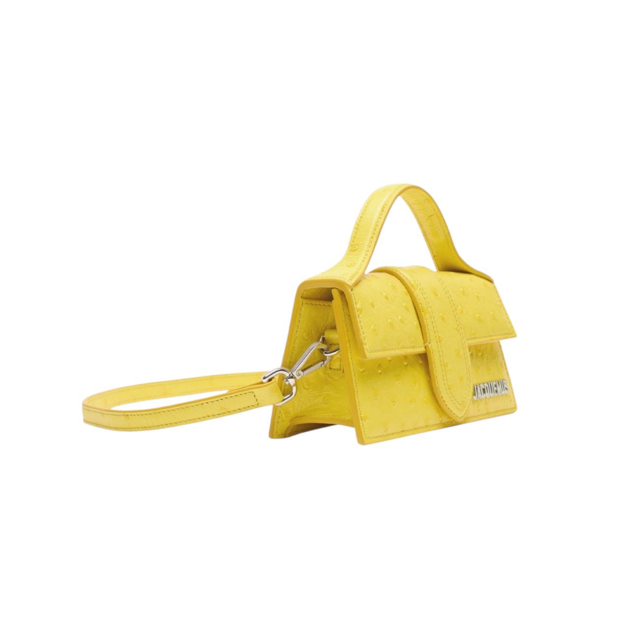 Non perdere l’occasione di possedere questa straordinaria Jacquemus Le Bambino gialla effetto struzzo. È il momento di aggiungere un tocco di colore vibrante e un’eleganza audace al tuo guardaroba.
