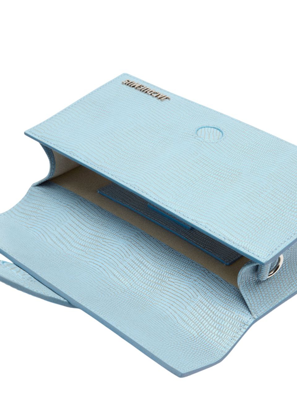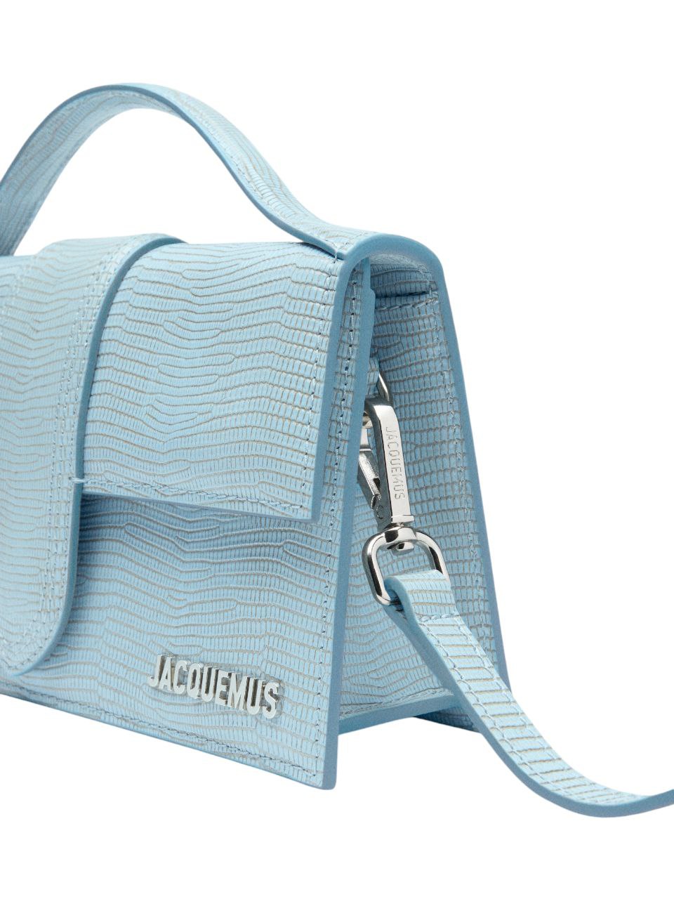 La borsa Jacquemus Le Grand Bambino in azzurro effetto lucertola è un accessorio senza tempo che aggiungerà un tocco di colore e originalità al tuo guardaroba.