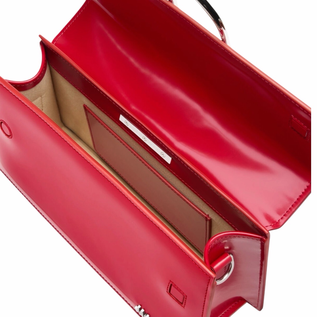 Design Esclusivo e Audace: La combinazione della pelle verniciata rossa con i dettagli argentati rende questo modello una vera rarità, perfetta per chi cerca un lusso distintivo e di tendenza. 🌟