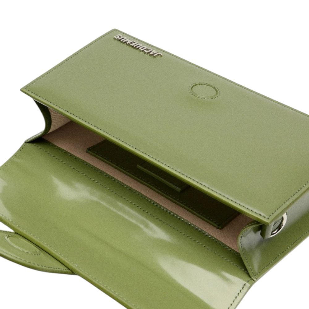 La Le Grand Bambino non è solo una borsa; è un’opera d’arte funzionale. La sua silhouette strutturata e allungata, le linee pulite e le proporzioni perfette la rendono immediatamente riconoscibile come una creazione distintiva di Jacquemus. La finitura opaca sulla pelle verniciata verde non è solo trendy, ma conferisce alla borsa una profondità e una texture unica, rendendola un accessorio versatile e memorabile. 🎨
