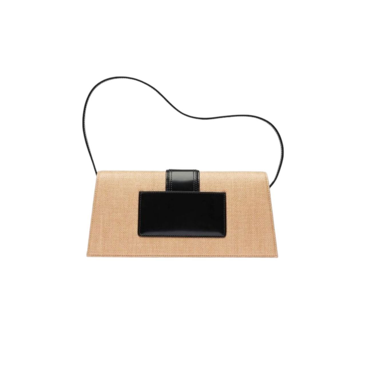 Immergiti nel lusso discreto con la borsa JACQUEMUS Le Bambino Long, un accessorio che cattura l’essenza dello stile contemporaneo con un tocco di naturalezza. Realizzata con una combinazione unica di pelle nera liscia e rafia intrecciata, questa borsa è un simbolo di sofisticatezza e originalità, perfetta per la donna che ama esprimere la propria individualità.
