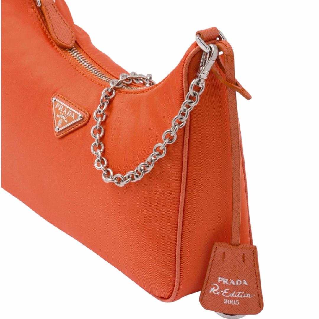 Non lasciarti sfuggire questa icona di stile nel colore più vibrante della collezione! La Prada Re-Edition 2005 Arancione aspetta solo di diventare la protagonista dei tuoi scatti migliori. 📸