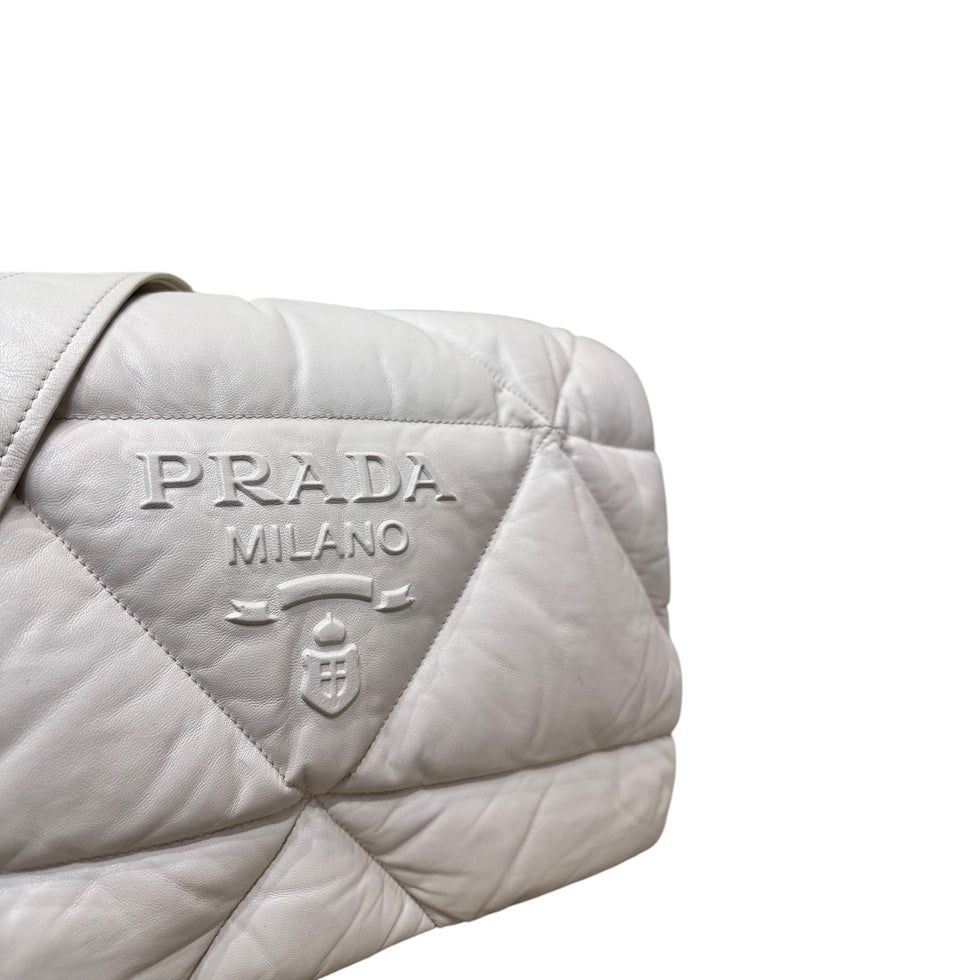 Eleva il tuo stile con la Prada Spectrum Bundle, una borsa che rappresenta il perfetto equilibrio tra l’innovazione del design e l’eleganza classica della Maison milanese. Questa versione in Edizione Limitata 2022 si distingue per la sua sofisticata pelle bianca con lavorazione trapuntata, creando un effetto geometrico unico che cattura la luce e l’attenzione. 💎