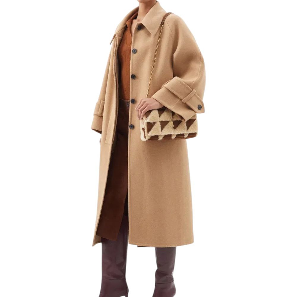 Design Unico e Tattile: La combinazione di suede marrone e shearling beige offre un look invernale chic e lussuoso, perfettamente in linea con le tendenze più sofisticate. La trapuntatura aggiunge profondità e raffinatezza. ✨