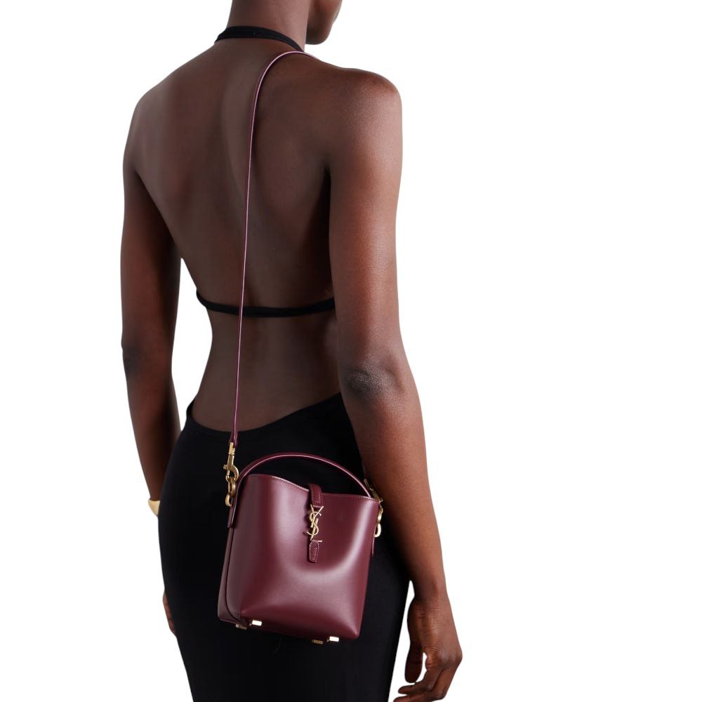 Eleva il tuo stile con la Saint Laurent Le 37 Mini, un capolavoro di design che fonde una silhouette secchiello contemporanea con l’eleganza senza tempo della Maison. Realizzata in una sofisticata tonalità Bordeaux e impreziosita da dettagli in Oro, questa borsa è il gioiello che ogni guardaroba desidera. 👜⭐